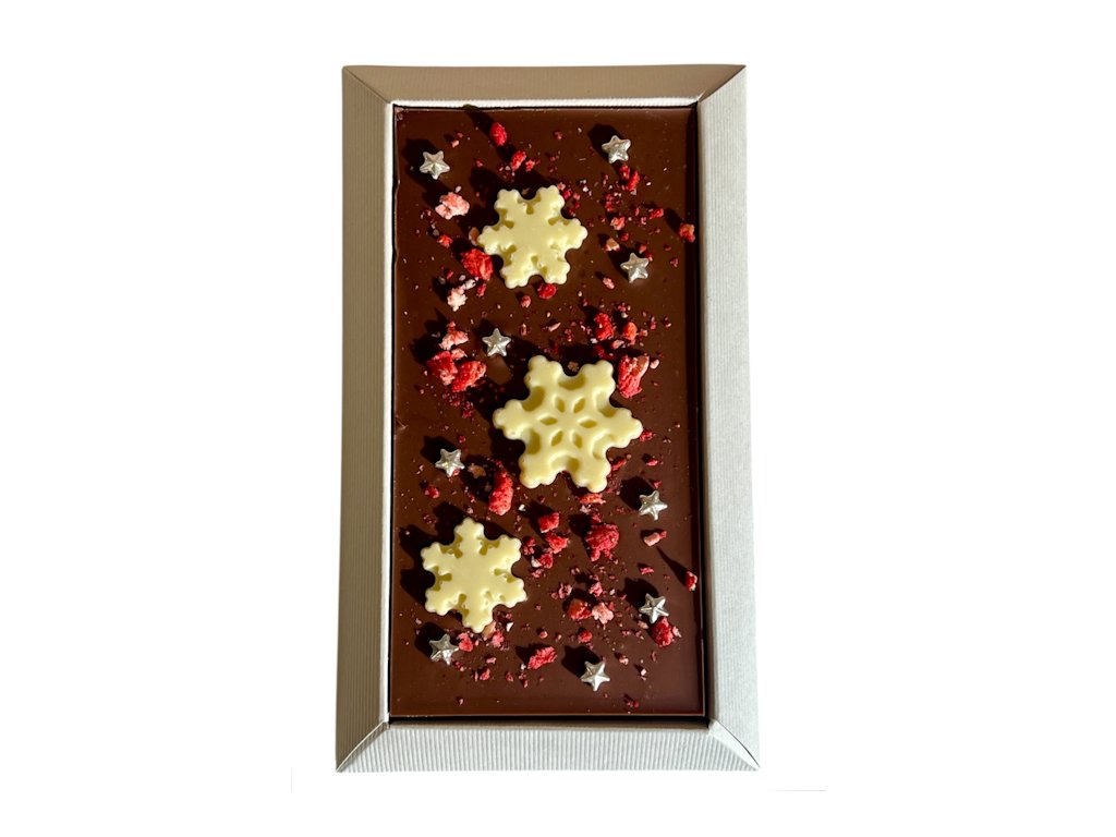 Skvělá francouzská mléčná čokoláda vyšperkovaná o sušené jahody.